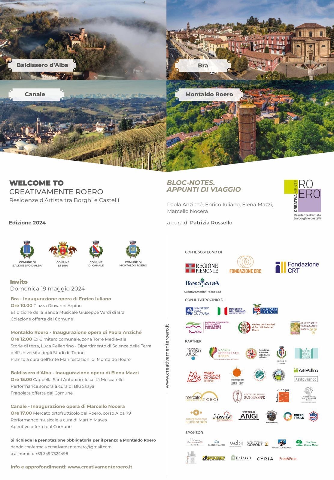 Descrizione Invito Domenica 19 maggio 2024 Baldissero d'Alba - Inaugurazione opera di Elena Mazzi Ore 15.00 Cappella Sant'Antonino, località Moscatello Performance sonora a cura di cura Blu Skaya Fragolata offerta dal Comune Per altri appuntamenti consultare la locandina in allegato info e approfondimenti: www.creativamenteroero.it